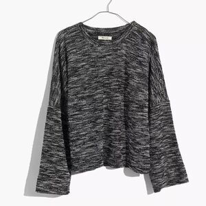 With dramatic wide sleeves and asymmetrical shoulder buttons, this boxy marled crewneck top is an easy weekend staple you'll get complimented on at work too. Looks great with high-waisted jeans—but then again, what doesn't?