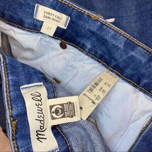 A cropped, bootcut leg completes the vintage vibe of high-rise denim jeans crafted with hold-you-in pockets that enhance the retro look. Fit: this style fits true to size. These are a size 37 which equal 24 according to Madewell but measure 22”- Zip fly w button closure - 5-pockets - High waist - Whiskering & fading - Bootcut leg