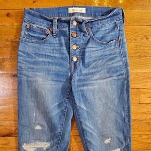 Madewell Cali Demi Boot Jeans Womens 24 Blue Button Fly Distressed Bess Wash