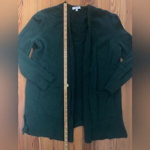 Lightly worn. Dark green in color. Wool and alpaca blend. Open cardigan. Measurements included. Size S