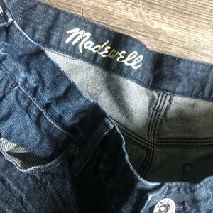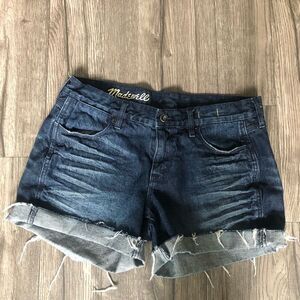 Madewell Women's Cut Off Jean Shorts Roll Cuff Dark Wash 100 % Cotton Intentional distressing Midrise