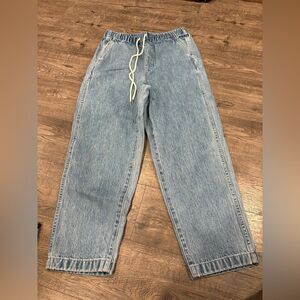 Experience ultimate comfort with Madewell's relaxed blue denim pants, featuring a soft, washed look and an elastic waistband for a laid-back style.