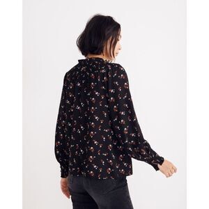 Madewell Embroidered Smockneck Top in Tossed Floral True Black Size Medium