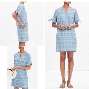 Madewell Embroidered Tie Sleeves Pockets V Neck Dress