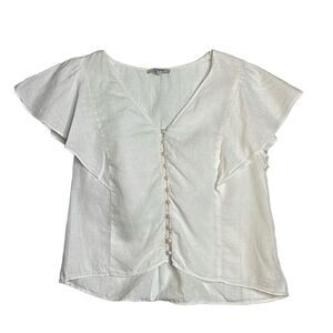 Madewell Flutter Sleeve Linen Ivory Blouse Button Front Size 10