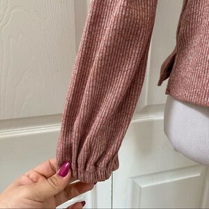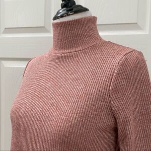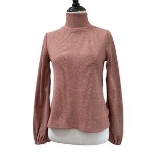 Part-sweater, part tee, this warm ribbed heathered turtleneck—with a swingy shape and balloon sleeves—is the type of versatile top that looks effortlessly cool no matter the occasion.