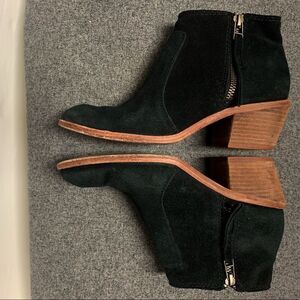 A go-anywhere ankle boot with a walkable stacked heel and a hand-stitched zipper pull. Inspired by luxury shoemakers, this keep-forever style is made of soft suede with an easy-to-break-in leather sole." 3 7/10" shaft height (based on size 7). 2 1/10" heel. Suede upper. Leather lining and leather soles