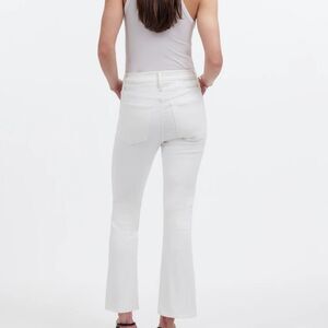 modern mid-rise cropped jeans have a kicked-out flare leg.