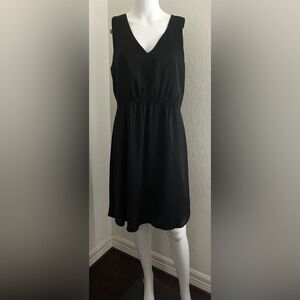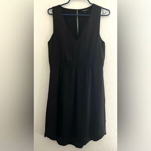 This stunning black midi dress by Madewell features an elastic waist design and a flattering v-neckline, perfect for cocktail parties or a night out. The sleeveless style and midi length offer a chic and comfortable fit, making it a versatile addition to your wardrobe. Gently worn, please look at photos for measurements.