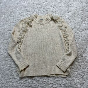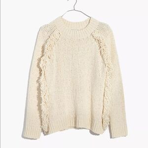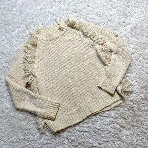 In excellent condition. No stains, tears, or flaws. Textural loops along the side. Cozy cotton/poly blend. Beautiful texture. Easy pullover. A fresh take on fringe, taking a simple sweater to the next step.