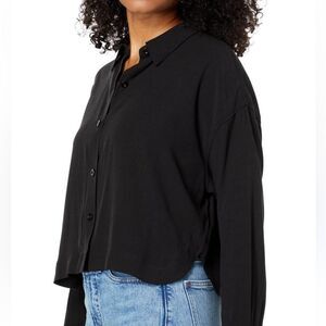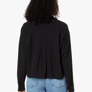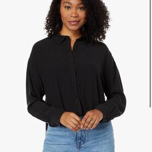 Elevate your wardrobe with this classic black button-up shirt. Perfect for any occasion, this top offers a timeless look and comfortable fit.