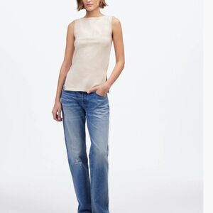 Madewell NU773 ivory Sleeveless Boatneck Side Slit Tee size xs