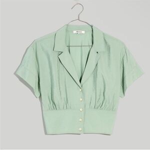 Madewell NWT Drapey Banded Bottom Button-Up Top in the color Pale Celadon in L
