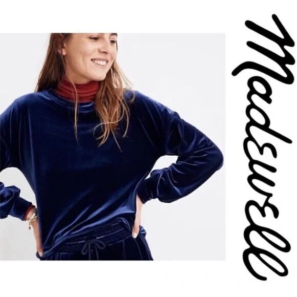 Madewell Navy Blue Velvet Top with Balloon Sleeves. Size S.