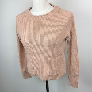 This sweater is in excellent condition. Featured with two pockets at the waist and a crewneck. Cream in color and size XXS. Made from cotton, viscose, and nylon. Please send any offers or questions!