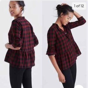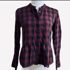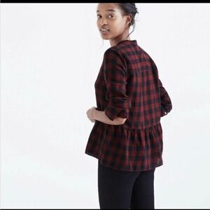 Madewell Peplum Checked Cotton Linen Button Down Shirt