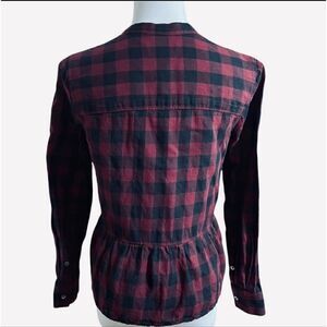 Lovely flannel type shirt in burgundy and black Buffalo checks. Casual and sweet in great condition!