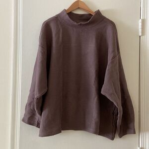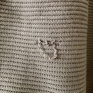 Please note small pull on lower part of shirt. Please note color of sweater is brown/purple.