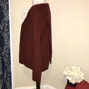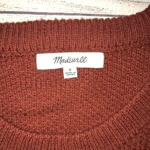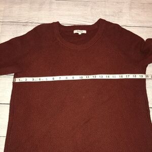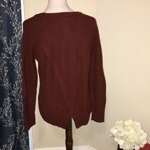 Good, preloved condition. Madewell Province Cross-Back Sweater. Burgundy shade. Crewneck. Oversized. Criss-Cross back Detail. Slight signs of wear. Care and content tag removed.