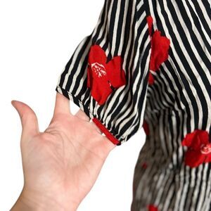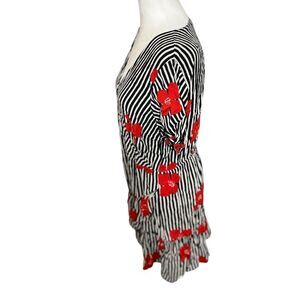This chic sundress by Madewell showcases a classic black and white palette with a playful ruffled wrap design. Featuring a flattering V-neckline and short puff sleeves, it's perfect for casual outings or resort wear. The mini length adds a youthful touch, making it a versatile addition to your wardrobe.