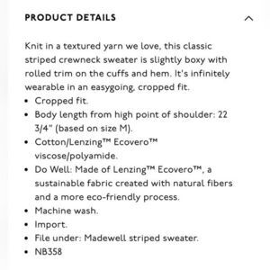 Madewell Seagrove Pullover Sweater Extra Small Navy and Natural Stripe C…
