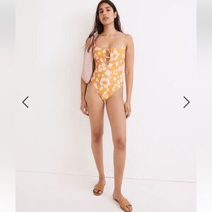 Madewell Second Wave Tie-Front One-Piece Swimsuit in Watercolor Floral