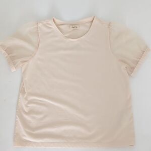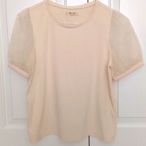 A fancy-ish take on a tee, this versatile knit top has sheer