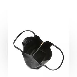 Elegant black leather tote bag with a sleek design. Perfect for everyday use.