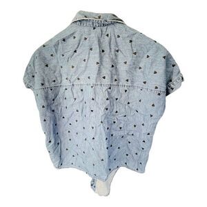 Madewell Short Sleeve Heart Detailed Tie Front Jean Top Shirt Size XXS