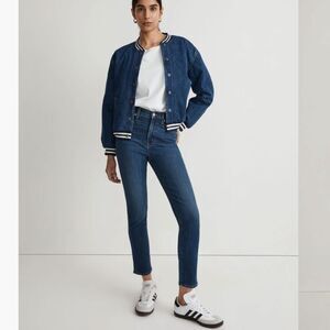 Madewell Stovepipe jeans in Brentside Wash, a versatile medium blue wash. These jeans feature a flattering high rise and a slim, straight stovepipe leg that’s easy to dress up or down. Crafted with stretch for comfort and movement.