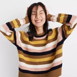 Madewell Striped Merino Wool Tilden Pullover Thick Knit Sweater