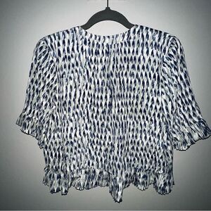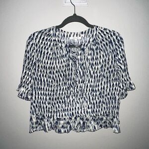 Madewell Sunpleat Lace-Up Top in Painted Feathers - Size Small. Like new!! Swingy and cropped, this pretty crepe top is as easy to wear as a tee. Check out all the special details, from the lace-up neckline to the delicate pleated trim.