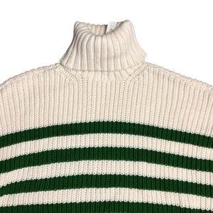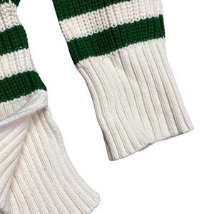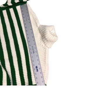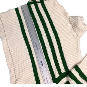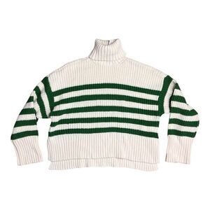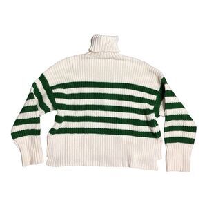 Madewell Sweater Womens M Cream Ribbed Green Striped Wide Turtleneck NO064 Preppy Rugby Classic Holiday Christmas