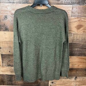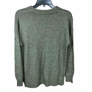 Pullover Sweater Donegal Bartlett by Madewell Wool Poly Blend with V Neck in Forest Green with Black Specks Ribbed Cuff and Hem Side Slits Size Small