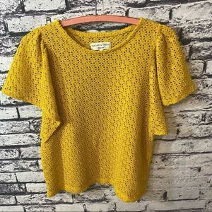 Madewell Texture and Thread Eyelet Flutter Top - Small