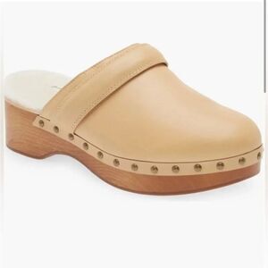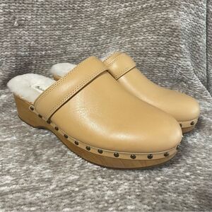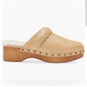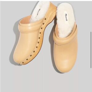 Madewell The Cecily Genuine Shearling Lined Leather Wood Clog Size 8