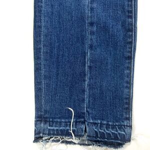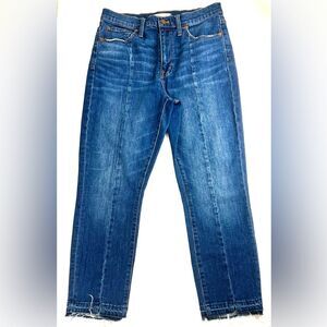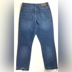 Experience the perfect blend of style and comfort with Madewell's blue ankle cropped jeans. These jeans feature a high-waisted design and a fitted silhouette that relaxes slightly towards the ankle, offering a modern twist on a classic look. The medium wash denim with natural fading and whiskering adds a casual, lived-in feel. See photos for measurements.