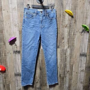 Details: high waisted, stretchy, medium wash, skinny, front and back pockets, zipper fly