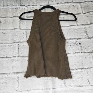 Madewell Valley Sweater Tank Ribbed Solid Brown Raw Hem Womens Size XS.