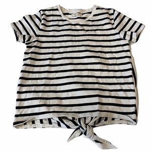 Madewell Black & White Striped Tie Back Short Sleeve Top