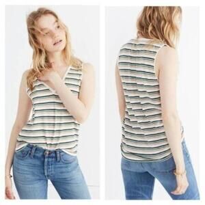 Madewell Whisper Cotton V-Neck Tank Roger Stripe. It's no secret, this best-selling pocket tank is the kind of forever favorite you'll want in every color. Fashioned of light and airy slub cotton, this striped V-neck style is live-in-it soft and perfectly draped. Relaxed fit. New With Tags. 100% Cotton.
