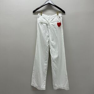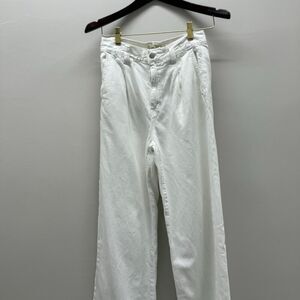 White cotton (100% Cotton). Jeans & Denim. Front zipper fly with button closure. 28.5" inseam. 11.5" rise. Imported. Waist 26.5