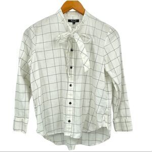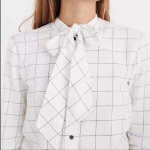 Madewell Windowpane Flannel Front Bow Tie Button Front Long Sleeve Top