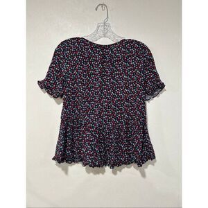 Madewell Women’s Small Black Red Floral Peplum Short Sleeve Ruffle Hem Blouse