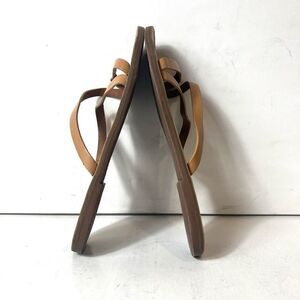 Step out in style with these Madewell Tan Leather Slip-On Slides! These sandals offer both comfort and a casual, strappy design, perfect for summer. They are pre-owned but very well-kept and clean, showing only minimal wear.