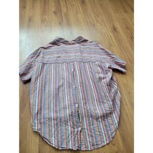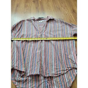 Madewell Women's V-Neck Multicolor Stipe Button-Back Courier Pullover Blouse Top Size Small
