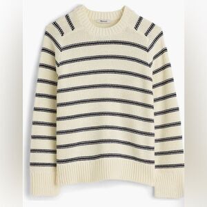 MadewellβXL Bright Ivory Navy Stripes Reverse Knit Crewneck Sweater