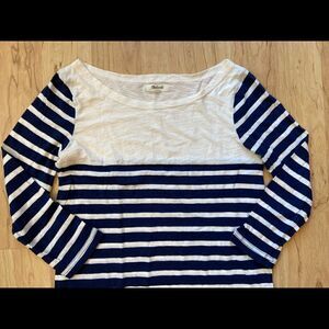 Madewell navy and white horizontal stripe shirt. 3/4 sleeve. 100% cotton. Size small. Great condition!