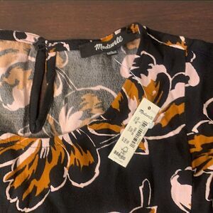 Coming in a moody floral print, this throw-on top has shirred sides and cuffed sleeves for an effortless feel.