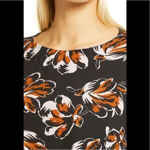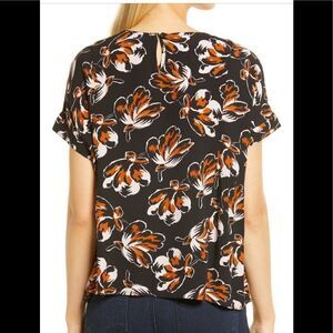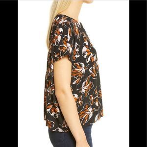 NWT, Coming in a moody floral print, this throw-on top has shirred sides and cuffed sleeves for an effortless feel.